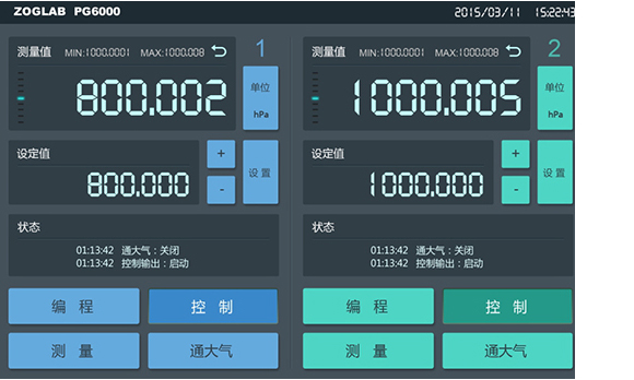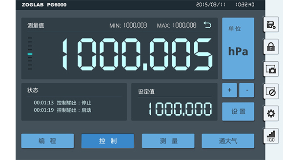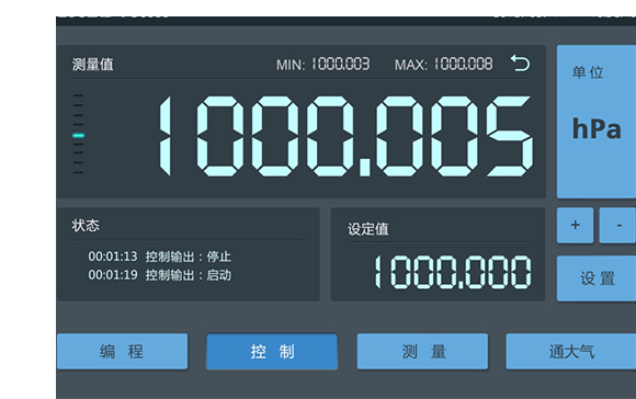 点击界面上的按钮即可快速实现气压控制输出、测量、编程等基本功能 |